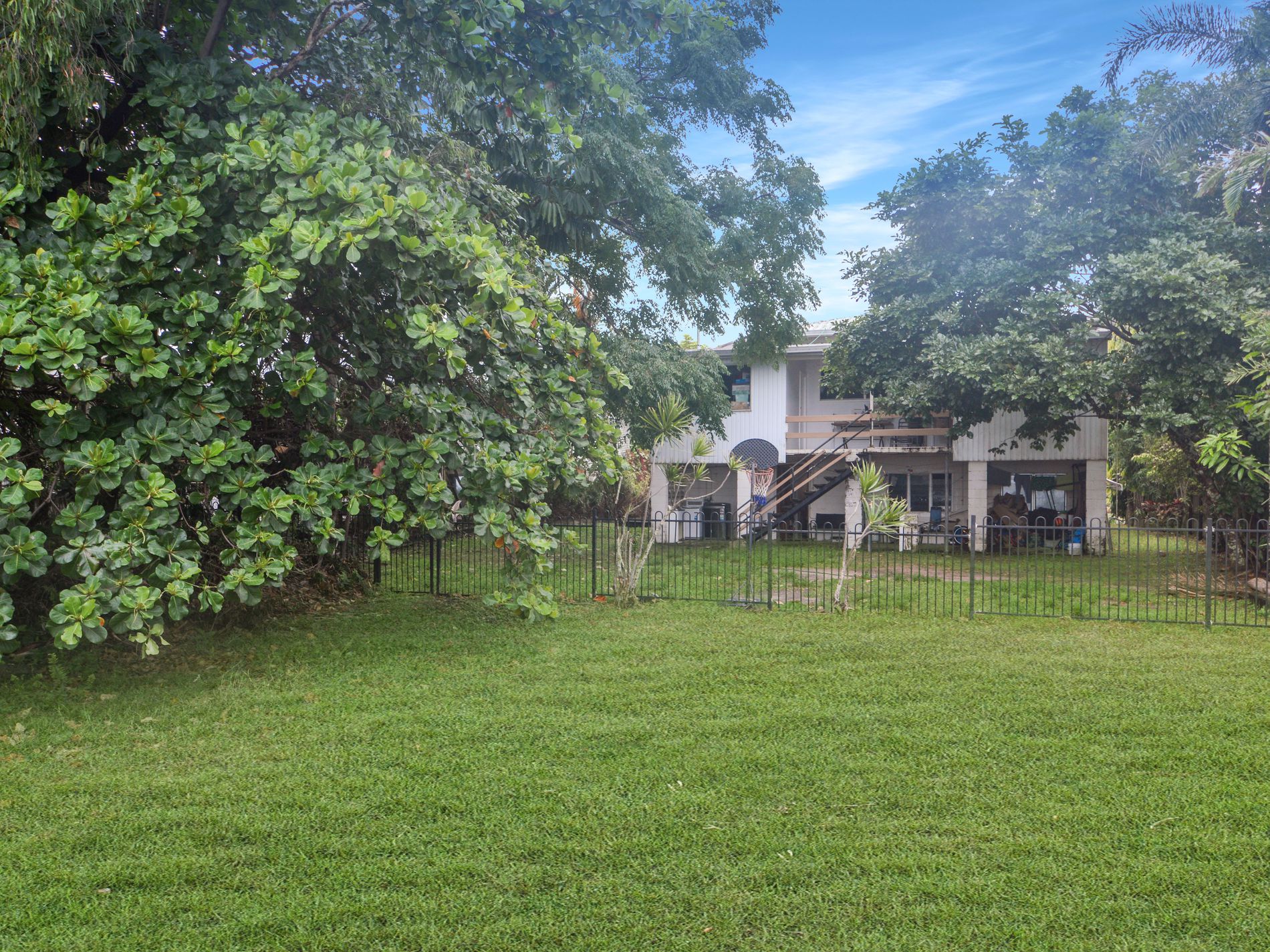 The spacious, fully fenced backyard backs directly onto the beach, offering privacy and space for gardening, outdoor activities, or simply relaxing in your tropical haven.