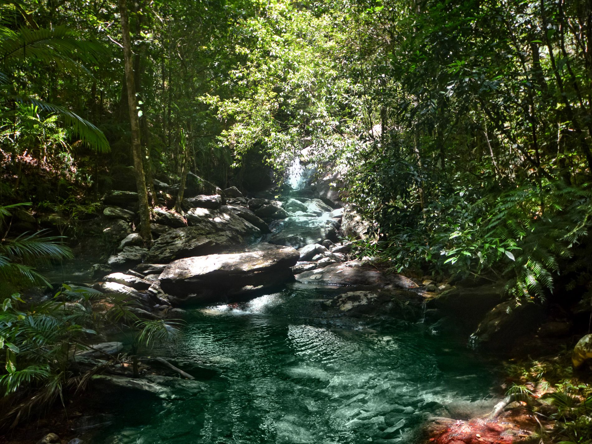 A private creek and waterfall at the rear of the property — a true sanctuary